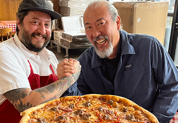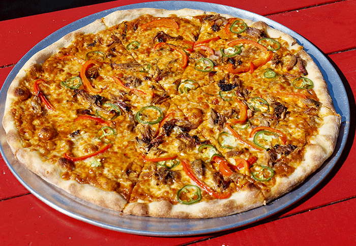 tomato sauce, mozzarella, cheddar, Bludso’s
